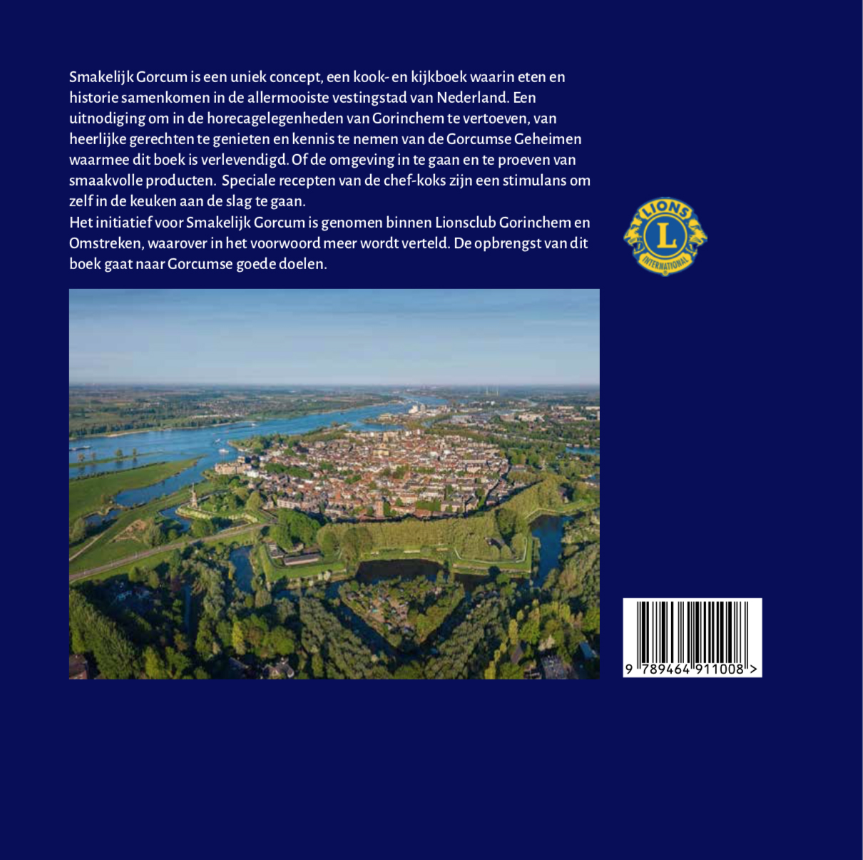 LIONSCLUB GORINCHEM EN OMSTREKEN Als president van Lionsclub Gorinchem en Omstreken en als kunstenaar annex lid van Kunstcollectief Woman4Art heb ik, met als inspiratiebron de diner-/vestingborden van het Historische Kabinet van Gorinchem, het initiatief genomen om met dit kook- en kijkboek binnen de vesting Gorinchem het historische en het culinaire te verbinden. En tezamen met alle Lionsleden, SMAKELIJK GORCUM ‘voor te schotelen’. Marian Tenkink |